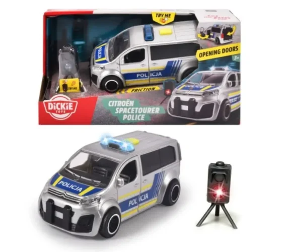 Nasz Radiowóz Policyjny Citroën z serii „SOS”  🚓✨to bardzo konkretna propozycja zabawy: trwała bryka (~15 cm), gotowa do akcji, z otwieranymi drzwiami, bagażnikiem, sygnałami świetlnymi i dźwiękowymi oraz radarową funkcją „kontrola prędkości”.