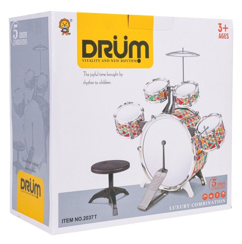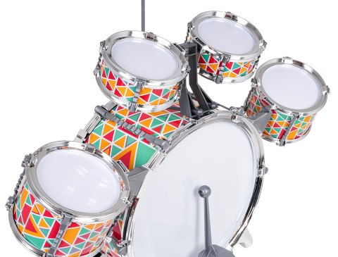 • 5 bębnów (jeden duży z pedałem, dwa średnie, dwa małe)
