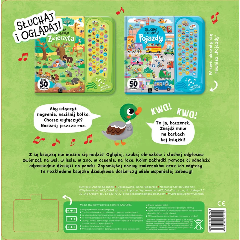 🐾Razem z maluszkiem siadacie na dywanie — otwieracie tę wielką, kolorową książkę i… dzieje się magia. Ilustracje zwierząt w lesie, na łące, w zoo i pod wodą ożywają odgłosami. Naciśnijcie przycisk i usłyszcie ryk lwa, śpiew ptaka, plusk wody. Książka „Słuchaj i oglądaj! Zwierzęta” to nie tylko lektura — to interaktywna przygoda dla ciekawych świata dzieci i ich rodziców.