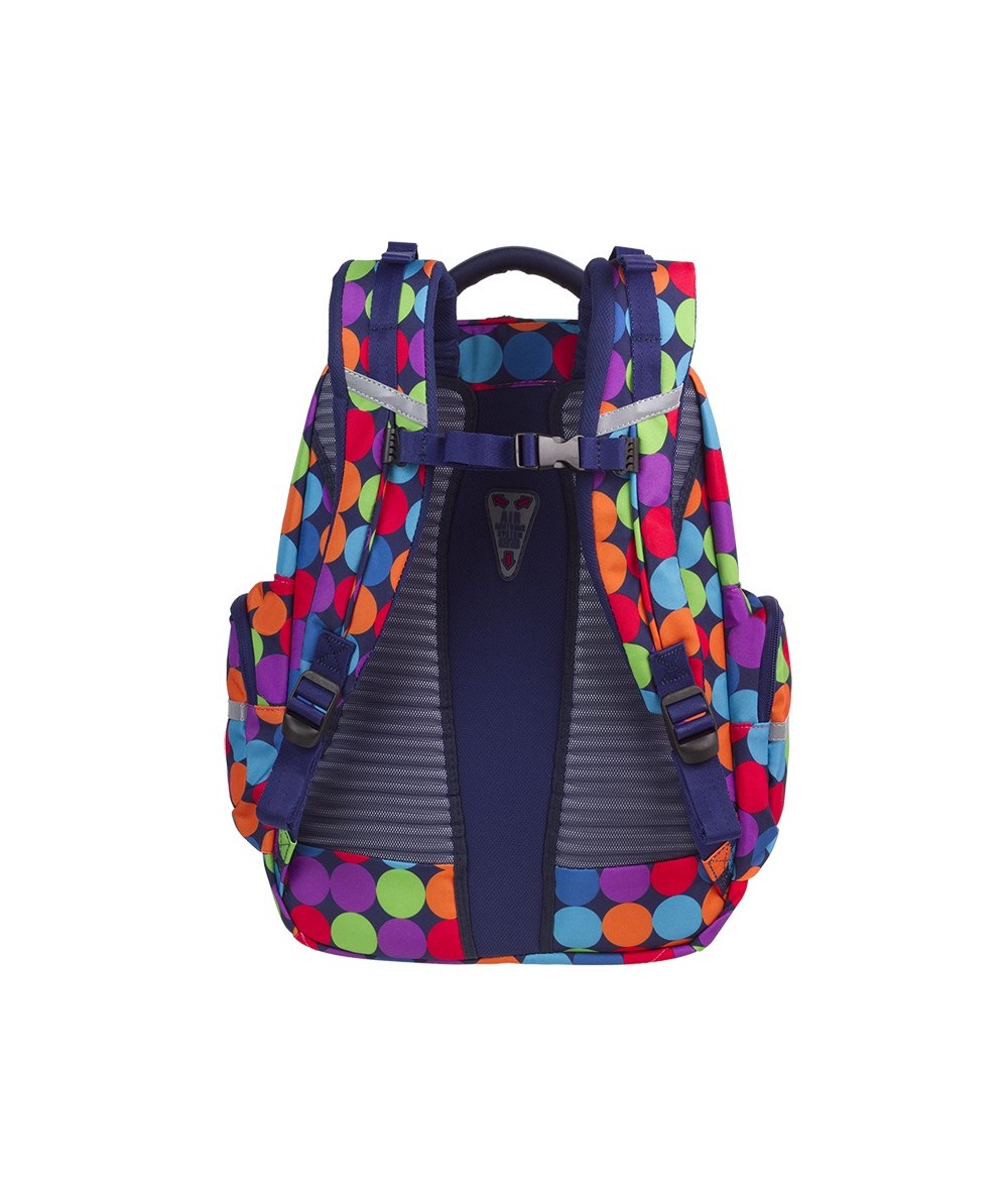 Ten plecak to jak eksplozja kolorowych baniek — wzór „Bubble Illusion” przypomina wirujące kulki w odcieniach tęczy, które zabierają nas w podróż wyobraźni już od pierwszego spojrzenia.